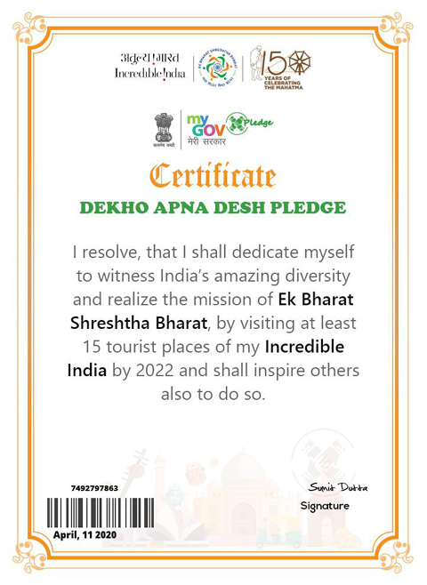 This time is really for Dekho Apna Desh - I resolve, that i shall dedicate myself to witness India's amazing diversity and realize the mission of